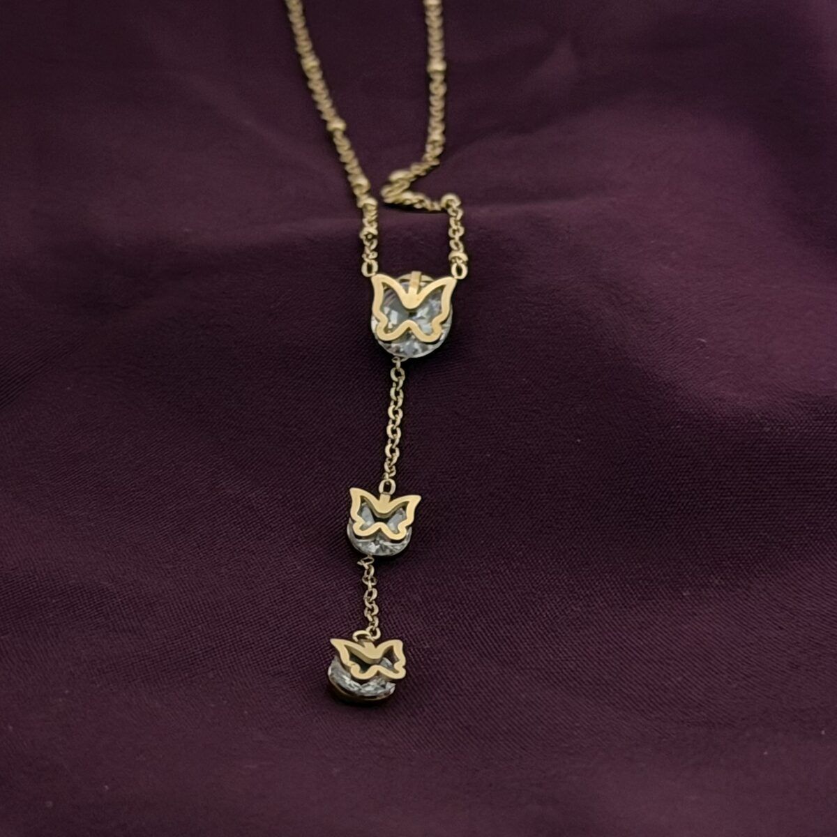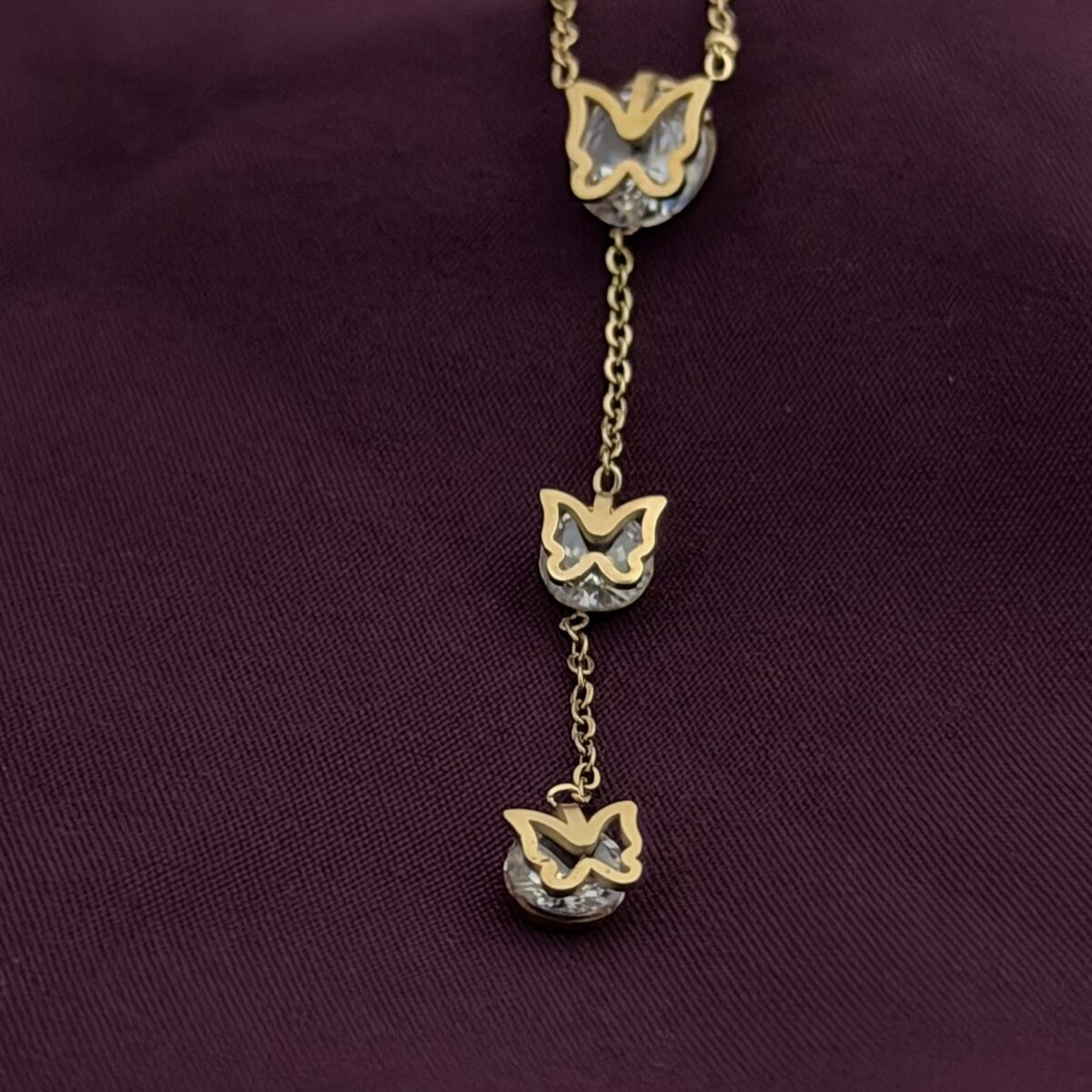 Rose Gold Plated Butterfly Lariat Necklace with American Diamond CZ Stones