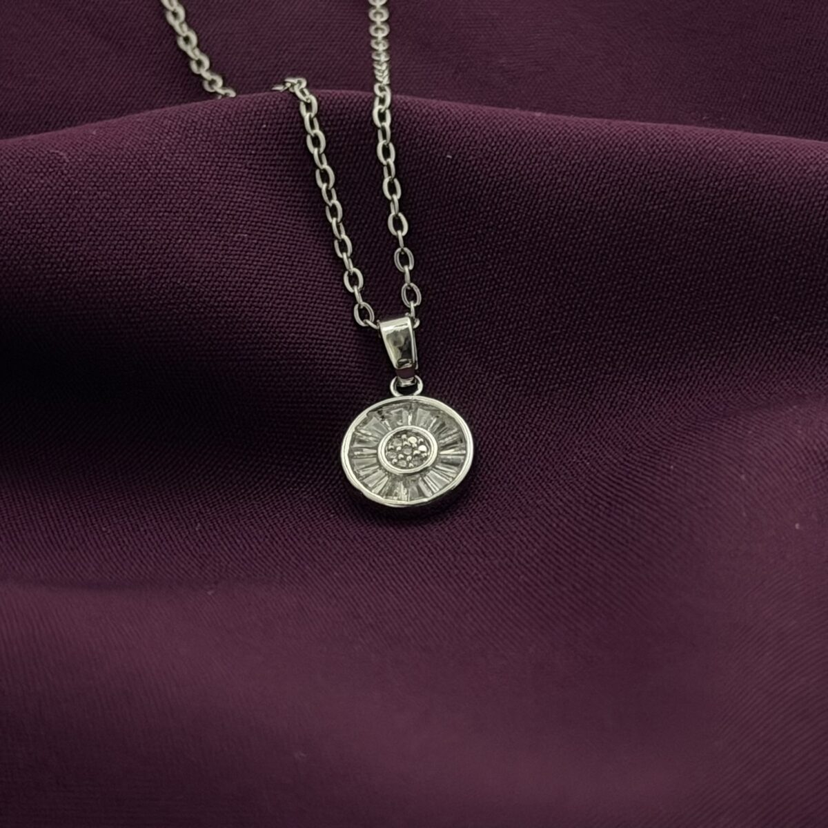Silver Plated Sunflower Pendant Necklace with American Diamond Center Stone